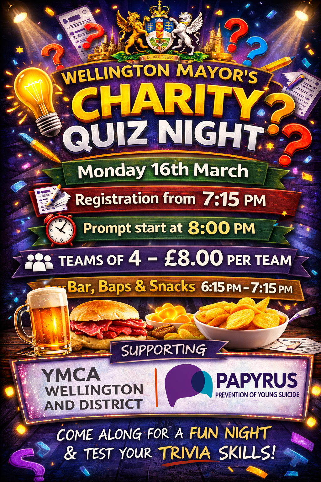 Mayor of Wellington Charity Quiz – Monday 16th March ’26